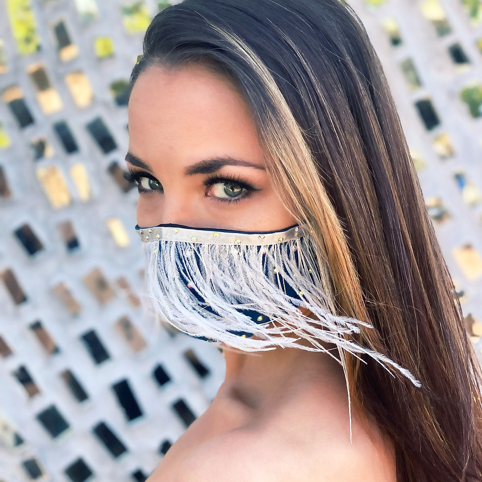 Feather Rhinestone Face Mask