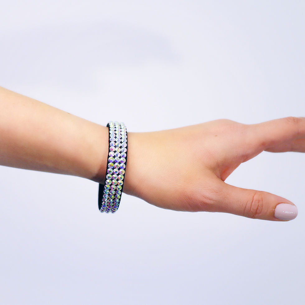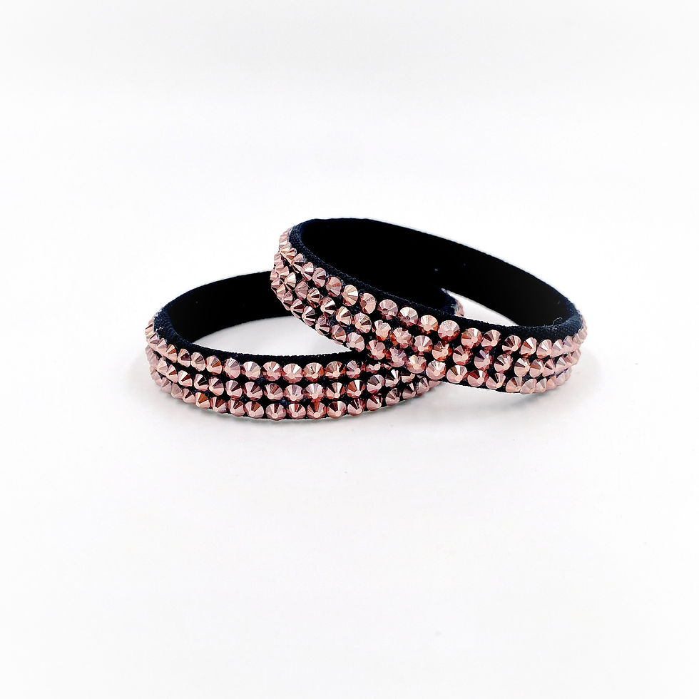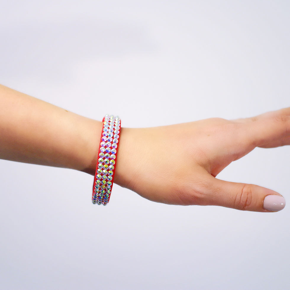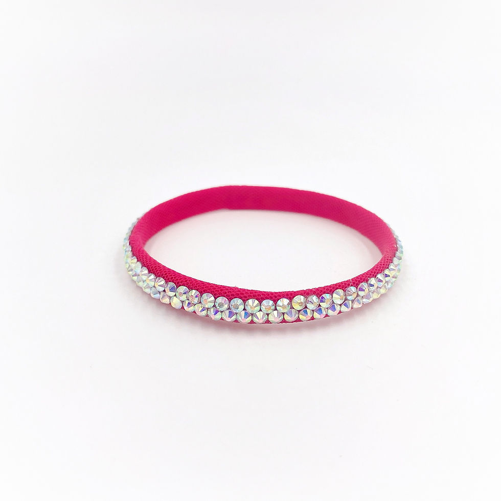 Our rhinestone bangle bracelets are lightweight, bold, and made to stack. Crafted from flexible dress boning, wrapped in mesh fabric, and rhinestoned on the outside, they offer both structure and sparkle. Available in a variety of sizes and colors, these bangles are perfect for mixing, matching, and layering to create your own standout look.